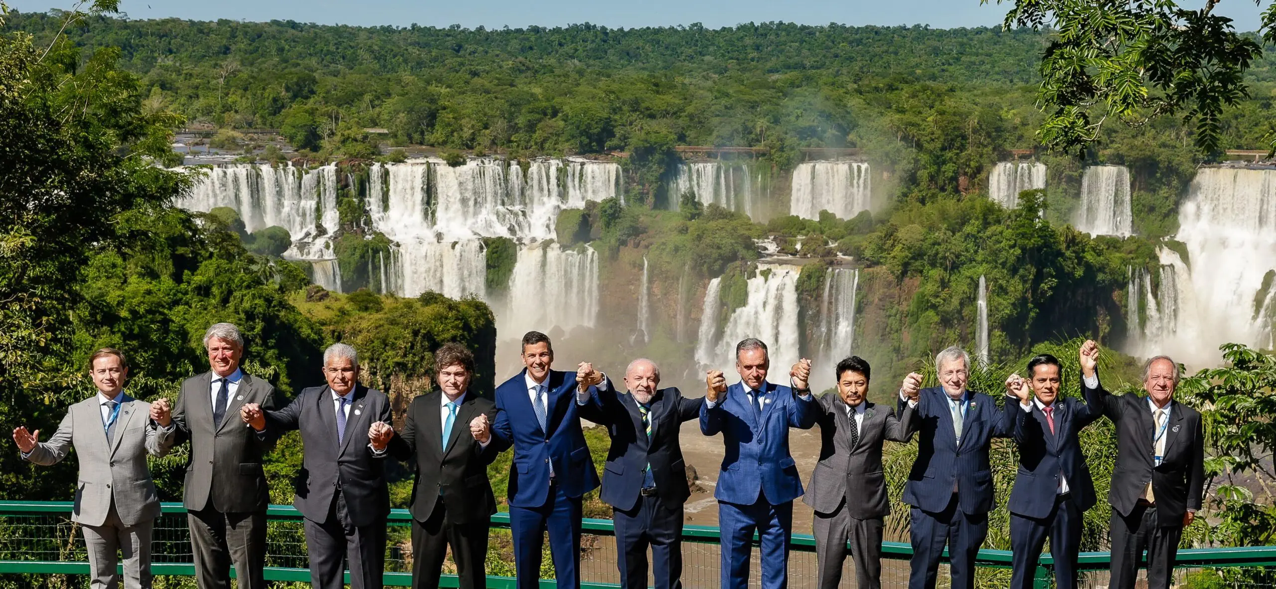 Lula com Presidentes e Chefes de Delegação dos Estados Partes do Mercosul e dos Estados Associados. Mirante da Cataratas: frustração pelo impasse com União Europeia (Foto: Ricardo Stuckert/PR)