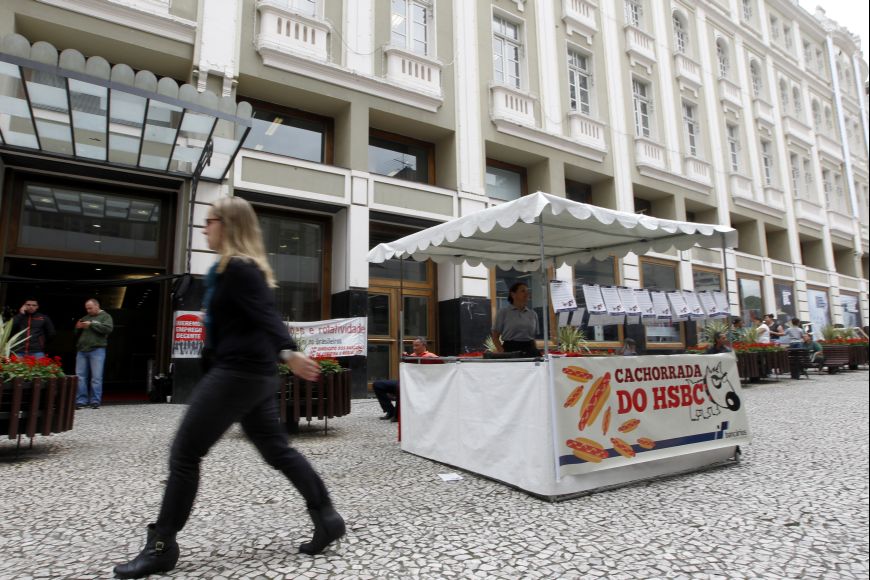 As unidades do HSBC fechadas são as agências Orleans, Ceasa, Marechal Deodoro, André de Barros, Vila Hauer, Mercês, Juvevê, Brasílio Itiberê e João Negrão, e os centros administrativos Palácio Avenida, Xaxim, Vila Hauer e Presidente Kennedy. Além de fechar agências, os funcionários montaram uma barraquinha de cachorro-quente em frente ao Palácio Avenida. No banner, a frase: "Cachorrada do HSBC".