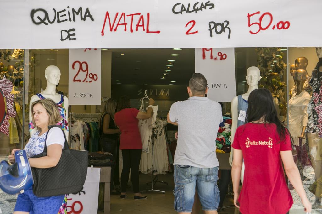 A situação econômica do país refletiu no movimento de final de ano do comércio em Curitiba. Nesta quinta-feira (24), o movimento nas lojas do Centro da capital era fraco durante a manhã e acabou decepcionando os lojistas. Em uma volta pela Rua XV de Novembro, na região central, era comum encontrar lojas vazias e clientes com poucas sacolas na mão.