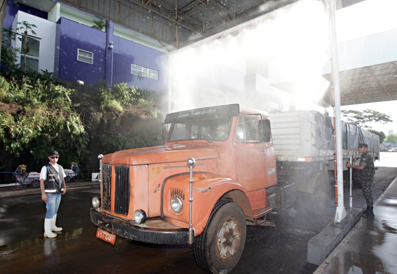 O Ministério da Agricultura instalou nesta semana mais uma barreira sanitária na aduana da Ponte Internacional da Amizade, entre Foz do Iguaçu e Ciudad del Este, no Paraguai. O arcolúvio, sistema automático acionado por um sensor, age na desinfecção de carretas, ônibus e carros de passeio que ingressam em território brasileiro vindos do país vizinho, onde no dia 19 de setembro exames confirmaram um foco de febre aftosa em 13 animais de uma fazenda no estado de San Pedro. Além da desinfecção e da orientação para quem cruza a fronteira, fiscais agropecuários e homens do Exército controlam a entrada de cargas e de produtos in natura. O mesmo equipamento será instalado em Santa Helena e Guaíra.