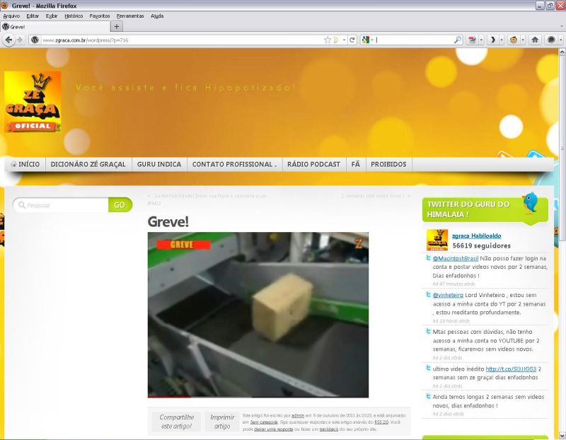 O que começou em 2006 com uma vontade de fazer vídeos para comentar jogos de videogame virou um dos canais mais populares do YouTube com mais de 37 milhões de visualizações. São centenas de filmes "míticos" que divertem os momentos "enfadonhos" da internet brasileira dois dos bordões do Zé Graça, como é conhecido o personagem de voz esganiçada que narra vídeos do YouTube.