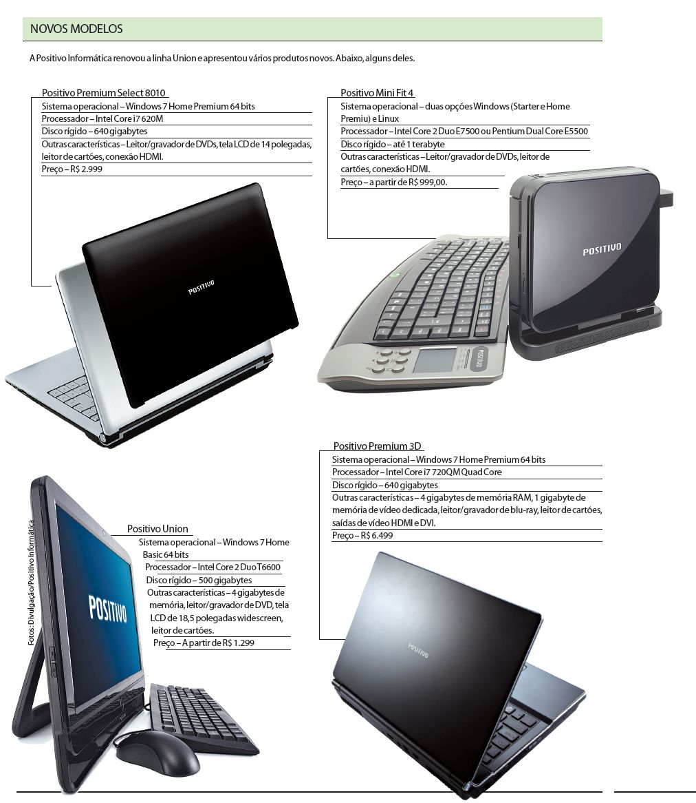 A Positivo Informática, líder no mercado brasileiro de computadores, aposta na personalização de produtos em sua nova linha, apresentada na semana passada. E também em novos formatos além dos desktops, notebooks e all-in-one, a empresa apresentou um modelo de nettop (o Positivo Fit) e comemorou os resultados do e-reader Alfa.
