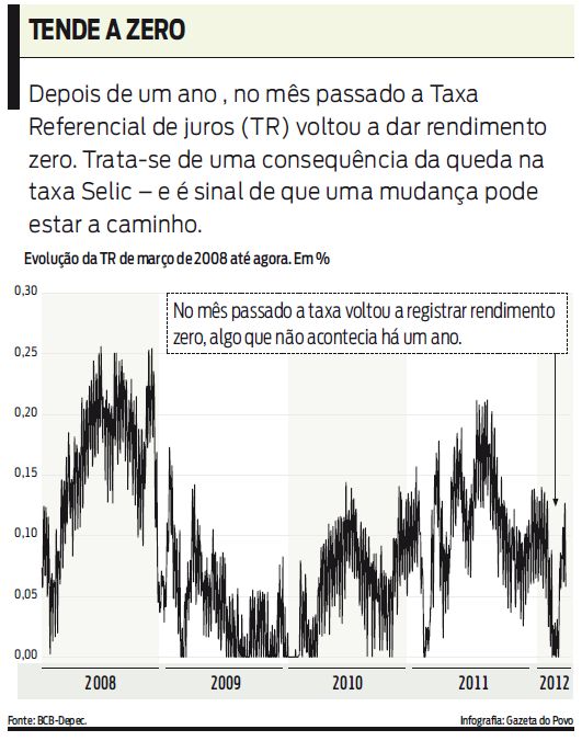 Enquanto a Selic cai, ferindo os ganhos da renda fixa em geral, a rentabilidade da poupança se mantém. A lei garante que ela será de 0,5% ao mês (6,17% ao ano) mais taxa referencial (TR) de juros. Assim, o piso de 6,17% só é atingido quando a TR cai a zero, algo que já ocorreu cinco vezes desde o início de fevereiro. "Se o governo não alterar a fórmula que calcula essa rentabilidade, o investidor deve fazer a conta antes de escolher entre renda fixa, ou mesmo outros fundos, e caderneta", diz Rogério Bastos, sócio da consultoria FinPlan.