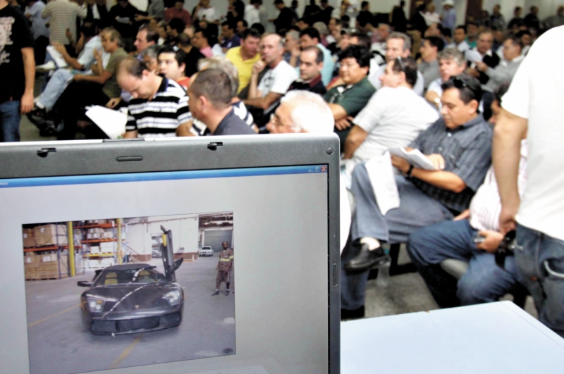 Loira, simpática, elegante, arrojada e persistente: uma empresária paulistana foi a estrela do leilão de veículos organizado ontem pela Receita Federal em Santos. Ela arrematou quatro cobiçados automóveis, desembolsando R$ 1,394 milhão, mais da metade dos cerca de R$ 2,3 milhões arrecadados no primeiro leilão para pessoas físicas realizado pela Receita desde 2006. "Foi presente de aniversário, vou fazer 60 anos", disse a empresária N.P., afirmando que ficará com a Ferrari, deixará um Porsche com o marido, outro com o motorista e a GM Hummer com o filho. Iniciado às 10h15 no terminal de passageiros do Porto de Santos, o Concais, o leilão atraiu aproximadamente 3 mil pessoas de diferentes estados. Dos 59 lotes anunciados no edital, 43 foram arrematados e 15 suspensos, sendo 11 por ordens judiciais e quatro por interesse da administração. Um lote não foi vendido e poderá ser reavaliado e colocado à venda. A arrecadação totalizou R$ 2.316.923, o que reflete um ágio de 85,59% sobre a oferta inicial.