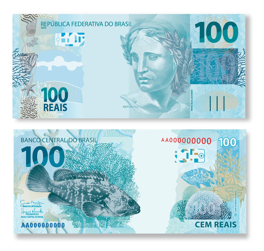 Segundo o BC, nas notas de R$ 50 e de R$ 100 "a maior novidade é a faixa holográfica, composta por desenhos descontínuos que, ao serem movimentados, apresentam efeitos de alternância de cores e formas". Os demais elementos de segurança também são de fácil visualização: marca dágua, que apresenta o valor da nota e a imagem do animal, e o número escondido, que aparece quando a nota é colocada na posição horizontal, na altura dos olhos.