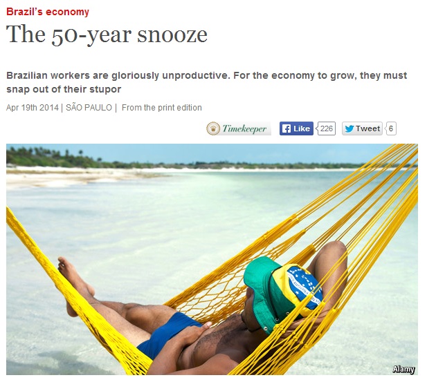 A última edição da revista The Economist traz uma reportagem (clique aqui para ler) bastante crítica ao mercado de trabalho no Brasil e em especial à produtividade dos trabalhadores. Com o título "Soneca de 50 anos", a reportagem diz que os brasileiros "são gloriosamente improdutivos" e que "eles devem sair de seu estado de estupor" para ajudar a acelerar a economia.
