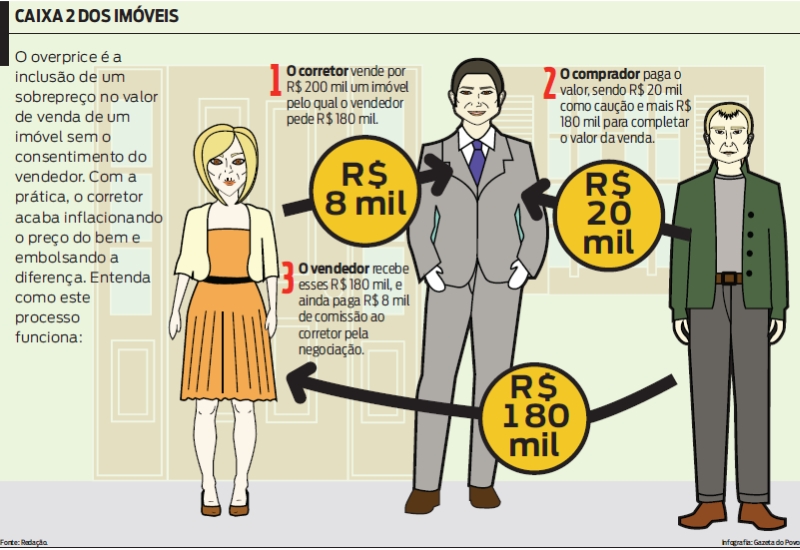 O aposentado Renato Sidnei Gaspar descobriu a prática do overprice em uma conversa com o comprador de seu imóvel. Ele conta que colocou um sobrado a venda em uma imobiliária pelo valor de R$ 190 mil. A imobiliária teria encontrado um comprador disposto a pagar R$ 180 mil pelo bem, e o proprietário acabou fechando o negócio nesse valor, assinando o contrato de opção de venda. Entretanto, depois de fechar o negócio, ele descobriu que o comprador pagou R$ 200 mil pelo seu imóvel. "No momento da entrega das chaves disse que ele fez um bom negócio pagando R$ 180 mil. Ele ficou surpreso, dizendo que tinha pago R$ 200 mil", conta. A diferença não contabilizada entrou na forma de um cheque caução e foi direto para o caixa da imobiliária.