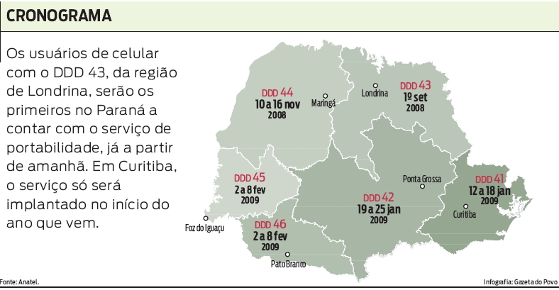 A portabilidade numérica entra em vigor amanhã em oito regiões do país, incluindo o código 43 de Londrina (Norte do Paraná). Em Curitiba, o benefício começa em janeiro de 2009. Além dos testes que garantem o funcionamento da portabilidade, as operadoras estão investindo tempo e esforço em promoções, vantagens e serviços. Tudo para atrair novos consumidores ou, pelo menos, manter o cliente pelos próximos 12 meses, com pacotes que vinculam o subsídio do celular novo a um contrato de fidelidade.