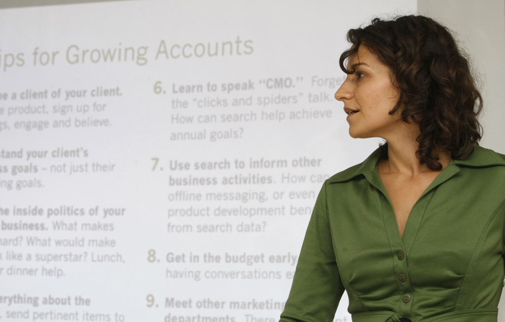 Sara compõe a mesa diretora da maior associação de search marketing do mundo, a Sempo, e foi responsável pela recente reestruturação da agência americana iCrossing, considerada a segunda maior do mundo no segmento. Em dezembro, ela esteve em Curitiba para participar de uma palestra para clientes e funcionários da i-Cherry, um das maiores agências brasileiras especializadas no assunto.