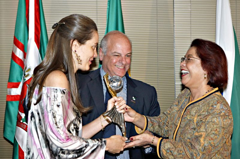 A jornalista Ana Amélia Cunha Pereira Filizola, vice-presidente do Grupo Paranaense de Comunicação (GRPCom, que edita a Gazeta do Povo), recebeu ontem o troféu Destaque Empresarial 2011, oferecido pela Associação Comercial do Paraná (ACP), por meio de seu Conselho da Mulher Executiva (CME). O prêmio homenageia a "empresária do ano", que se destacou em seu ramo de atuação. Na cerimônia, Edson Ramon, presidente da ACP, lembrou que Ana Amélia segue empunhando as bandeiras do Paraná, dando continuidade ao trabalho de seu pai, o jornalista Francisco Cunha Pereira. A coordenadora do CME, Kazuko Akamine (à direita na foto, com Ana Amélia e Edson Ramon), ressaltou a dedicação de Ana Amélia em sua rotina de trabalho e mostrou como a vice-presidente do GRPCom tem a estima e a admiração dos colaboradores da empresa. Em seu discurso, Ana Amélia, emocionada, agradeceu em nome de todas as mulheres que trabalham no GRPCom e lembrou as muitas ocasiões em que essas "duas senhoras" a ACP e a Gazeta do Povo venceram causas em benefício do Paraná. "Mas as batalhas ainda não acabaram, e vocês sempre podem contar com o GRPCom", acrescentou a jornalista e vice-presidente do grupo.