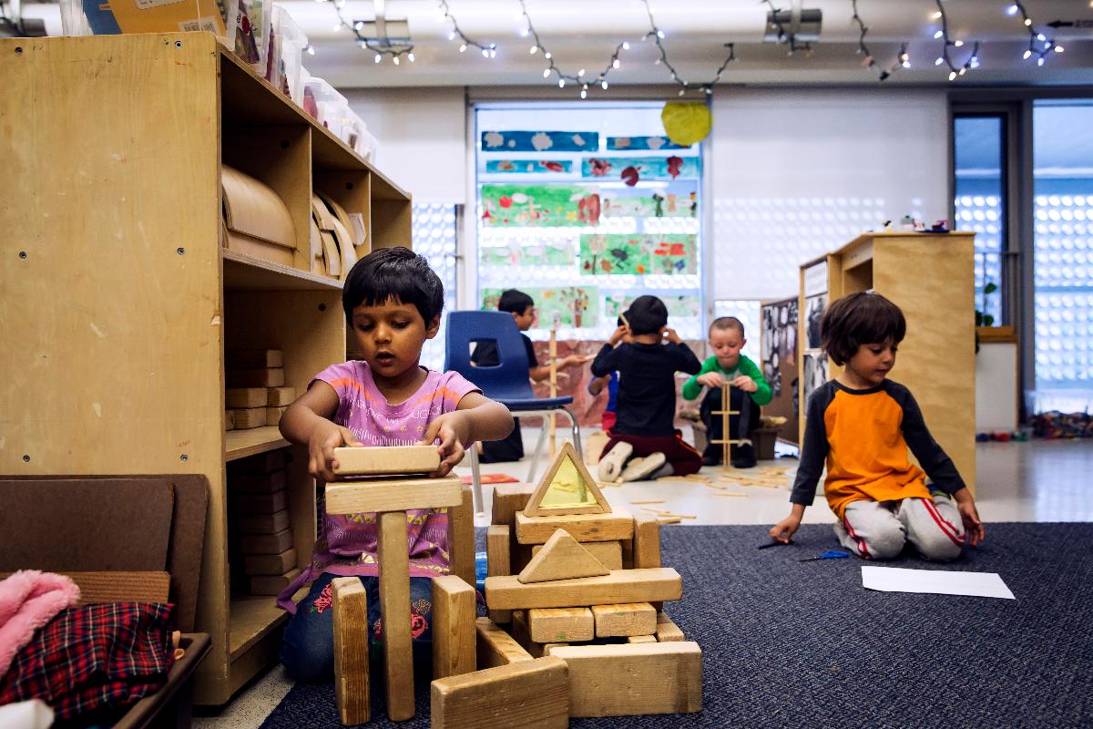 As meninas são alunas da Fraser Mustard Early Learning Academy – uma escola no bairro Thorncliffe Park de Toronto, um jardim da infância para crianças que moram nas proximidades.