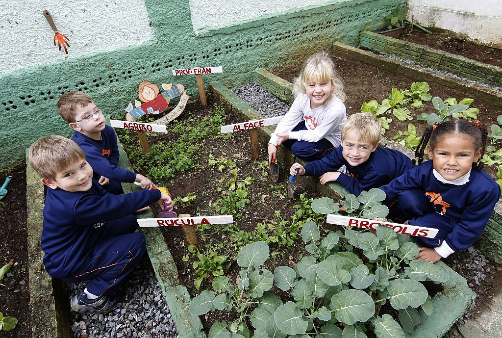 O trabalho na horta, feito pela escola Pés no Chão (foto), é uma forma de levar consciência ambiental a crianças de até 6 anos. "No mundo pequeno da escolinha, elas percebem a dimensão do meio ambiente e de suas atitudes.", diz a vice-diretora da escola, Roberta Obladen.