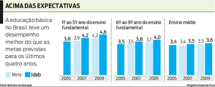 Enquanto os anos finais do ensino fundamental comemoram resultados positivos, o ensino médio ainda patina. A etapa foi a que menos cresceu entre 2005 e 2009. Na opinião do ministro, o que ocorreu é que desde 2005 a Prova Brasil passou a organizar as escolas públicas brasileiras do ponto de vista pedagógico. "As escolas passaram a conhecer o conteúdo que era cobrado e ensinar isto aos seus alunos. Mas os resultados deste esforço estão sendo verificados agora, nos anos iniciais", afirmou. O ministro também ressaltou que os estudantes de anos iniciais que estão sendo bem avaliados no Ideb terão impacto positivo no ensino médio daqui a alguns anos.