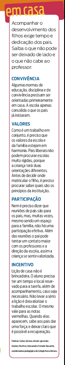 A secretária da Educação do Paraná, Yvelise de Souza Arco-Verde, diz acreditar que essa "terceirização" da família para a escola já aconteceu. "Uma maior articulação entre a escola e a família está sendo ensaiada. Por enquanto, a escola está resolvendo como pode", diz.