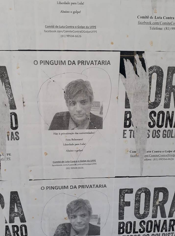 Perseguição semelhante, em outra instituição, contra outro profissional da educação, aconteceu no ano passado, em Recife. Dois dias depois do primeiro turno das eleições presidenciais, numa terça-feira, 9 de outubro, um grupo de estudantes promoveu, dentro das instalações da Universidade Federal de Pernambuco (UFPE), em Recife, a exibição do filme Bonifácio. Ao final da sessão, Rodrigo Jungmann, professor de filosofia que reservou a sala onde aconteceu o evento, saiu para a cantina, comer um lanche. “Não cheguei a comer”, lembra ele. “A cantina foi cercada por cerca de trinta estudantes e a guarda universitária disse que não poderia garantir minha integridade física e iria me conduzir até minha casa.”