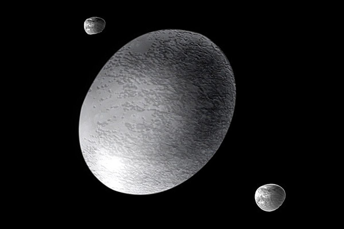 O planeta anão, que não é um corpo esférico e tem formato de uma bola de futebol americano, está a uma distância do Sol que varia de 35 vezes até 51,5 vezes a distância que a Terra está do Sol, e possui dois satélites: Hi’iaka e Namaka.