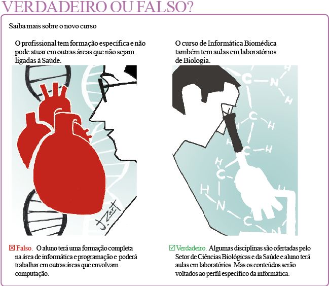 O vestibular 2011 da Universidade Federal do Paraná (UFPR) traz uma nova opção de graduação que chama a atenção por unir áreas distintas, a biologia e a computação. É o curso de Informática Biomédica que pretende formar profissionais para atuar no desenvolvimento de softwares e outros equipamentos e programas de informática que serão utilizados nas áreas da Saúde e da Medicina. Para esta formação, o foco será no conhecimento aprofundado da área de informática e programação de softwares, mas também terá muitos conteúdos de Biologia.