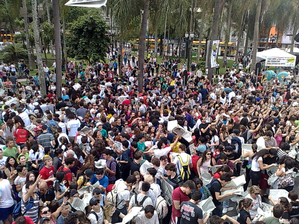 Para comemorar, o Vestibular da Gazeta do Povo promoveu a tradicional festa na Praça Carlos Gomes, com a distribuição de brindes e edições extras com a lista.