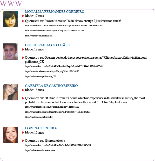 Caloura de Jornalismo, Gabriela de Castro Ribeiro, de 18 anos, optou pelo Facebook. "Queria conhecer o pessoal e ver o que tinham para falar sobre o curso." Mesmo assim ela prefere conhecer pessoalmente os colegas. "Confio mais nos meus olhos."
