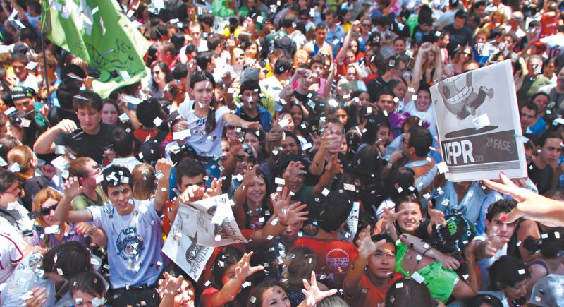 O resultado do processo seletivo da Universidade Federal do Paraná foi divulgado ontem e levou centenas de estudantes para a comemoração. Foram aprovados 5.236 candidatos, 5.016 em caráter definitivo e 220 passaram à terceira fase, destinada a cursos que têm processo seletivo estendido. As matrículas devem ser feitas entre os dias 31 de janeiro e 4 de fevereiro, de acordo com o cronograma divulgado no Guia do Candidato.