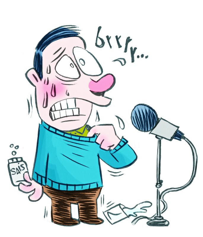 O nervosismo pode atrapalhar e muito o desempenho do aluno na hora de expor o conteúdo, mesmo que ele tenha bastante domínio sobre o assunto que vai falar. Para Armando Celia Junior, professor do curso de Teatro Espontâneo Processual da PUCPR, treinar em frente de um espelho também funciona. Mas ele ressalta que é importante que o aluno não decore um texto pronto, pois isso pode aumentar o nervosismo. "O desejo de transmitir uma mensagem e passar conhecimento deve ser maior que o medo de errar, pois isso trava. O aluno deve aceitar que errar é normal", avalia Armando.