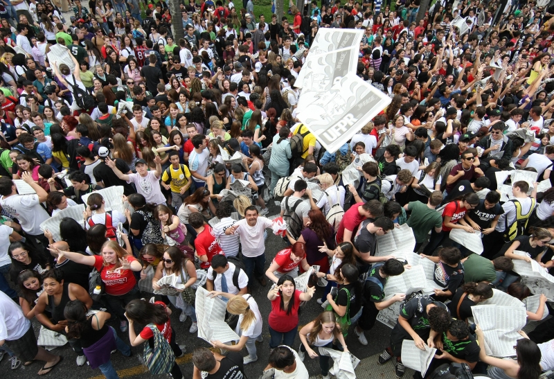 A festa dos aprovados na primeira fase do vestibular da Universidade Federal do Paraná (UFPR) promovida pela Gazeta do Povo reuniu centenas de pessoas na tarde de ontem na Praça Carlos Gomes, no Centro de Curitiba. Candidatos, amigos e familiares aguardaram com ansiedade a distribuição das edições extras do jornal com a lista dos 14.668 candidatos que passaram para a segunda fase do processo seletivo. A UFPR também divulgou no site do Núcleo de Concursos o desempenho individual de cada candidato e as notas do primeiro e último colocados em cada curso.