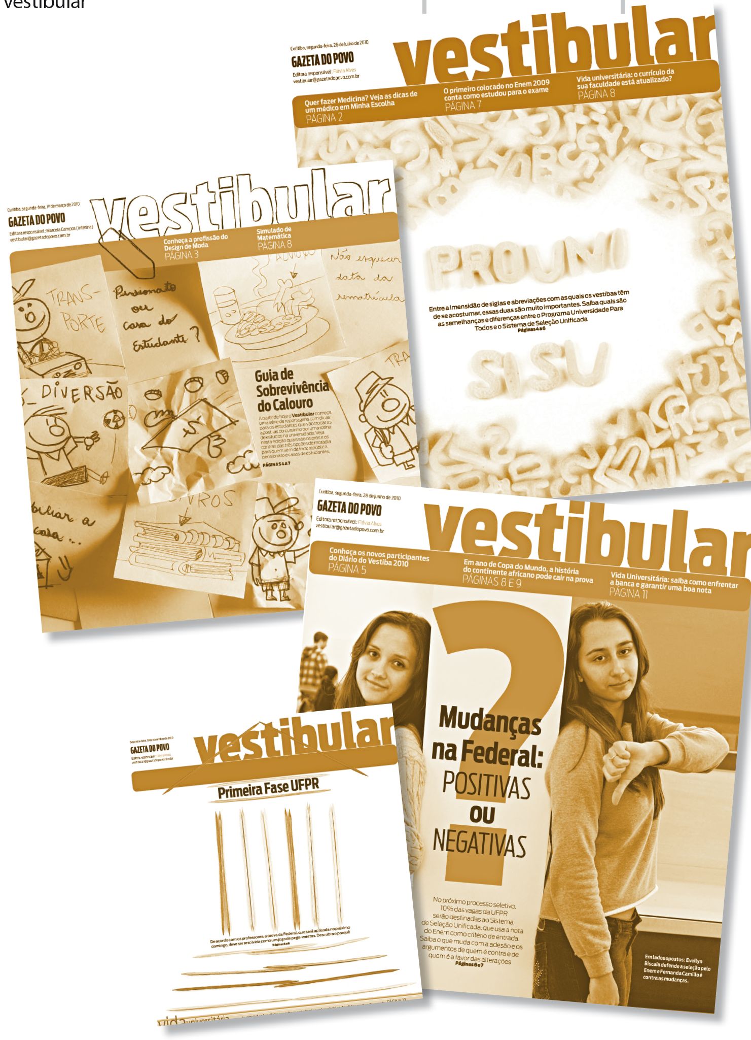 Este ano a equipe do Vestibular também deu atenção redobrada ao site, o que permitiu acompanhar as principais notícias em tempo real. Durante a realização das provas dos principais vestibulares de Curitiba, estivemos nas ruas conversando com candidatos, familiares, amigos e professores, comentando o andamento das provas e fazendo uma análise dos exames para ninguém perder nenhuma informação. Nossa presença mais forte na internet também foi reforçada pela participação dos vestibulandos. Ao longo de todo o ano, recebemos centenas de comentários, e-mails e mensagens no Twitter, com dúvidas e sugestões que nos ajudaram a melhorar nossa cobertura.