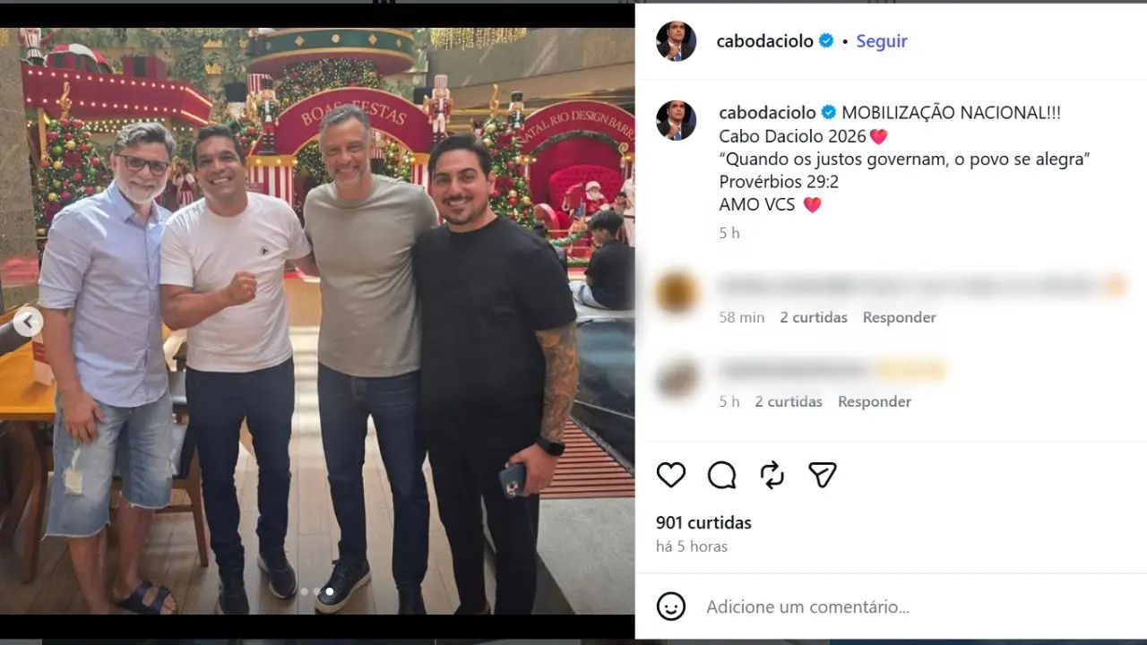 Com a foto da sua ficha de filiação, o ex-deputado escreveu: “Cabo Daciolo 2026” e fez referência ao versículo bíblico de Provérbios 29:2, que diz: “quando os justos governam, o povo se alegra".