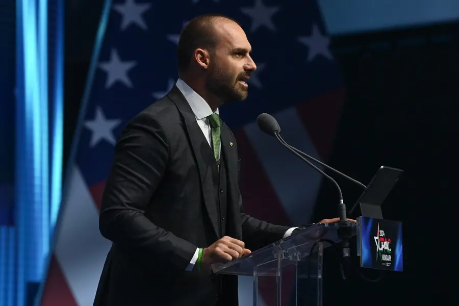 O ex-deputado federal Eduardo Bolsonaro (PL-SP) disse que o governador do estado de São Paulo, Tarcísio de Freitas (Republicanos), "não tem a opção" de se posicionar contrariamente à candidatura do senador Flávio Bolsonaro (PL-RJ) à Presidência da República. A declaração ocorreu nesta quinta-feira (22), em entrevista ao Jornal Razão.
