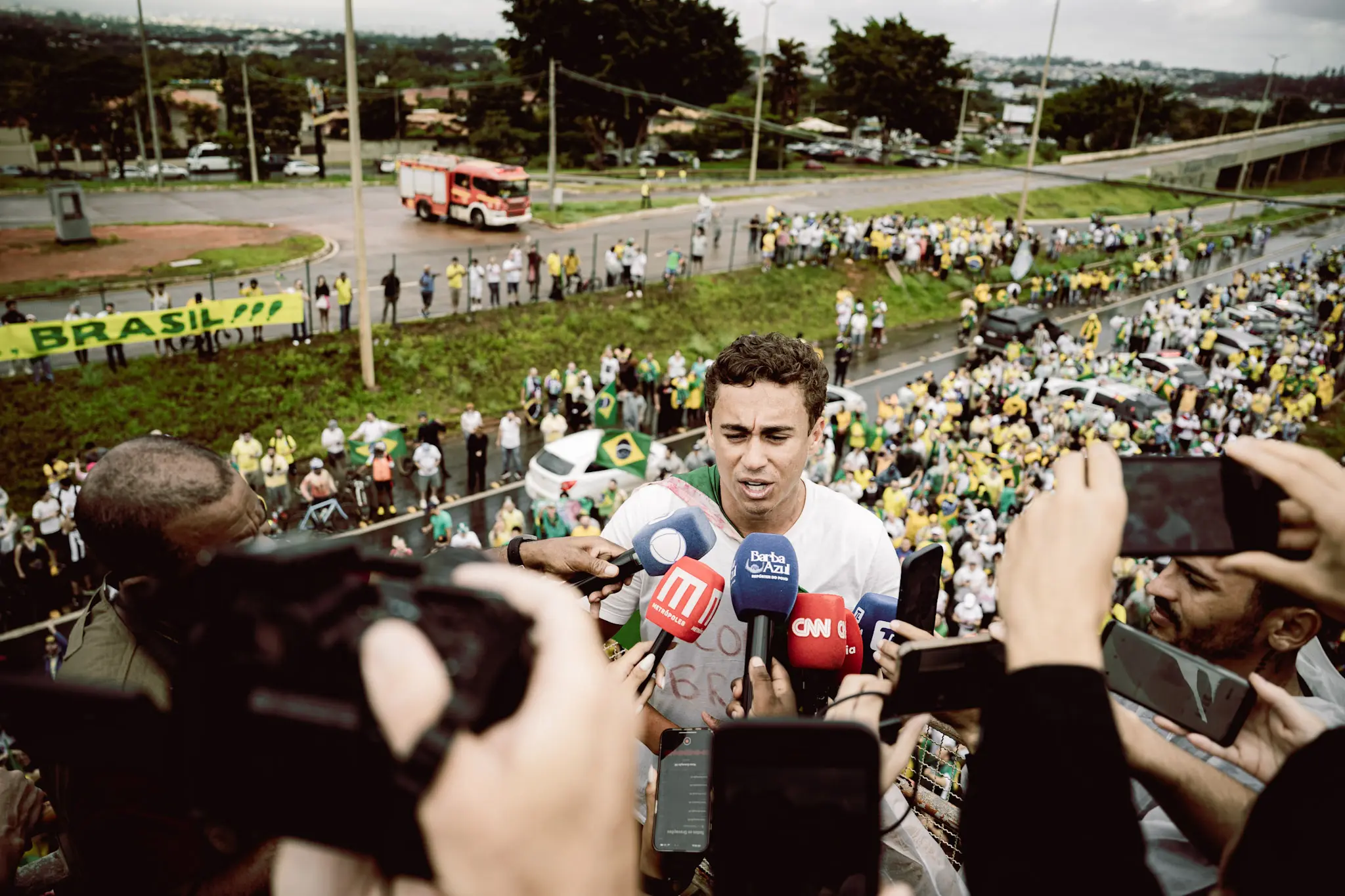 Nikolas Ferreira encabeçou uma caminhada de 240 km entre Paracatu (MG) e Brasília, pela BR-040. Ao longo do trajeto, diversos políticos e populares se juntaram ao parlamentar, o que culminou na participação de milhares de apoiadores em uma manifestação neste domingo (25), na Praça do Cruzeiro.