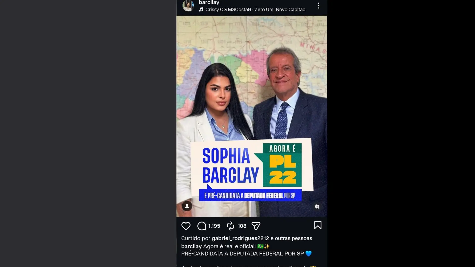 De acordo com Sophia, Costa Neto concordou com a disputa à Câmara pelo PL em uma reunião. “Assinada, confirmada e com compromisso firmado ao lado do presidente Valdemar Costa Neto, na família Partido Liberal (PL22). É só o começo de uma caminhada que vai fazer história!”, escreveu ela em suas redes.