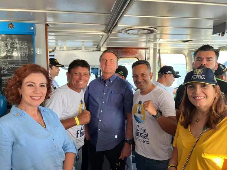 O presidente Jair Bolsonaro (PL) participou na manhã deste sábado (8) de uma romaria fluvial em celebração ao Círio de Nazaré, em um rio na cidade de Belém, no Pará. O presidente chegou às 6h20, em uma embarcação da Marinha, e fez um percurso de cerca de três hora, acompanhado das deputadas Bia Kicis (PL-DF) e Carla Zambelli (PL-SP), além do deputado federal paraense Eder Mauro (PL).
