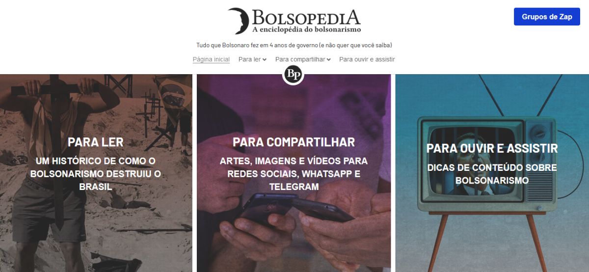 Mais um site com críticas ao presidente Jair Bolsonaro (PL), candidato à reeleição, foi criado nesta sexta-feira (2). O “Bolsopedia” reúne textos, imagens, vídeos e podcasts contra as ações do governo Bolsonaro. O site é apócrifo e os autores se dizem apartidários.