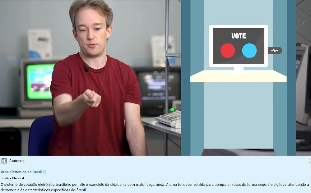 O YouTube colocou um painel indicativo no vídeo "Why Electronic Voting is Still a Bad Idea" ("Por que a urna eletrônica é ainda uma má ideia"), de 2019, do youtuber inglês Tom Scott, que tem mais de 5 milhões de seguidores. Scott é famoso por produzir vídeos sobre ciência, tecnologia e história. Em 2014, ele já havia gravado um vídeo questionando a segurança de urnas eletrônicas.