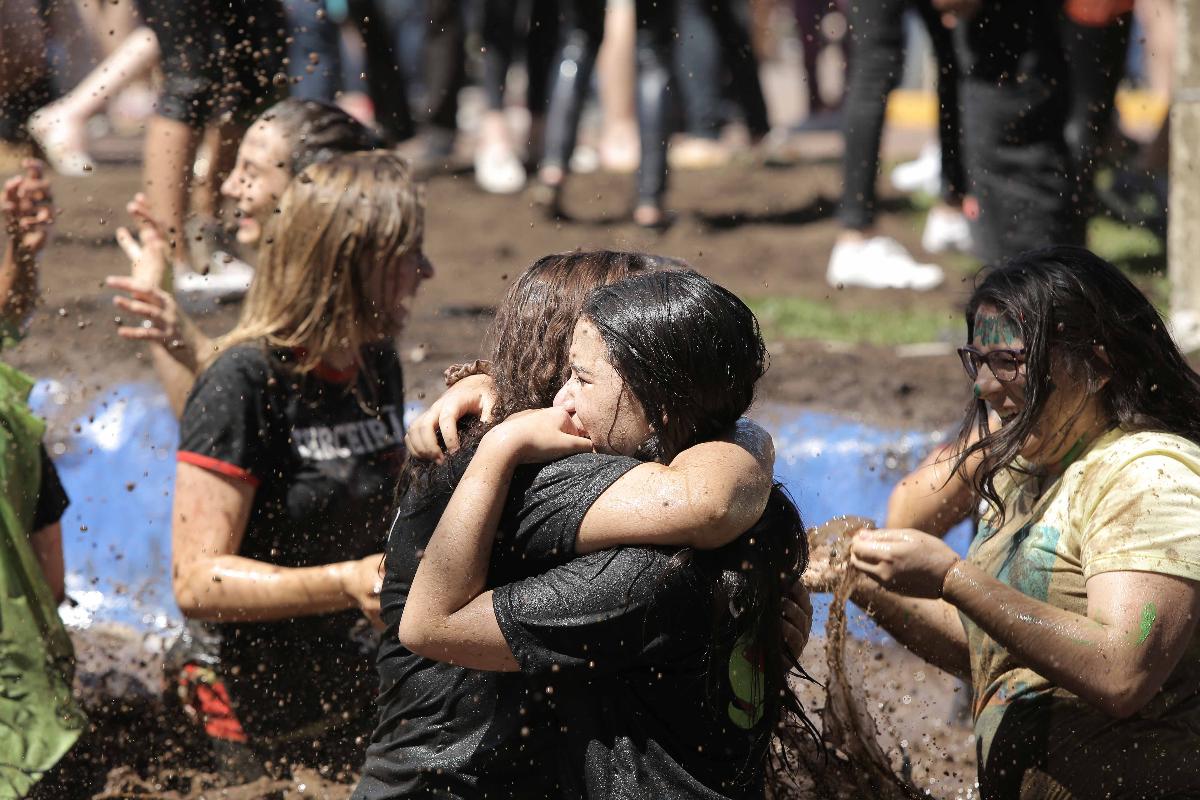 Aprovados no vestibular têm direito ao tradicional banho de lama (Foto: Fernando Dias/Divulgação PUCPR)