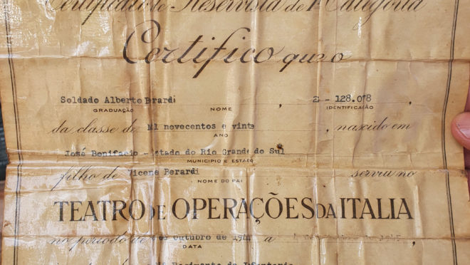 Sobre uma mesa, na propriedade rural de Élio, certificados, medalhas, brasões e fotografias. Tudo foi guardado para eternizar a memória do ex-combatente. Para a família, um verdadeiro herói nacional, mais que um voluntário, mais que um soldado. No fronte, revelou que a humanidade podia existir, mesmo diante de um “inimigo”.