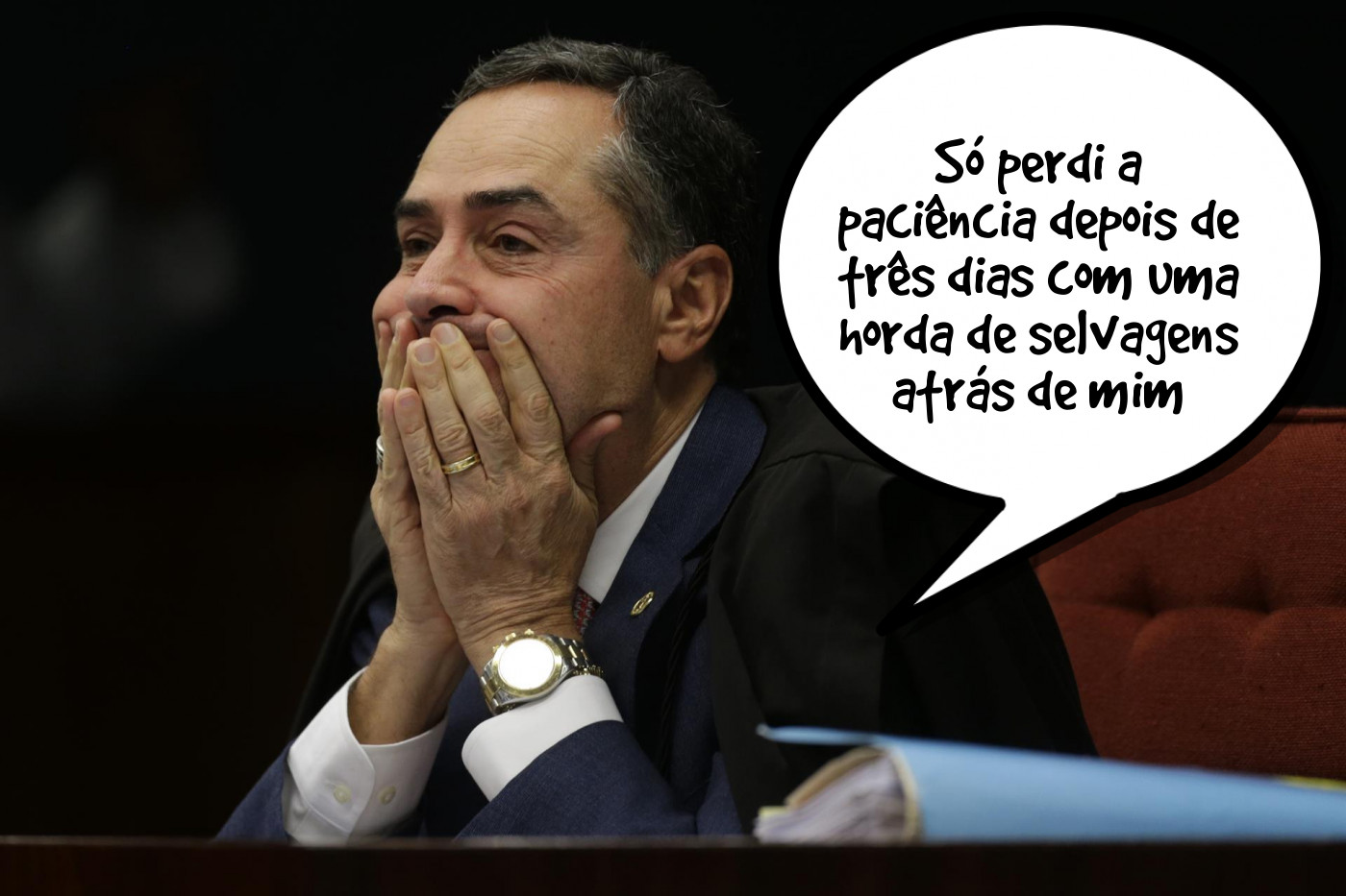 – Luís Roberto Barroso, ministro do STF. Charada para você: qual a diferença entre um iluministro e um cidadão comum, quando humanamente perdem a paciência? Só o último vai preso por desacato, injúria e “ameaça à democracia”.