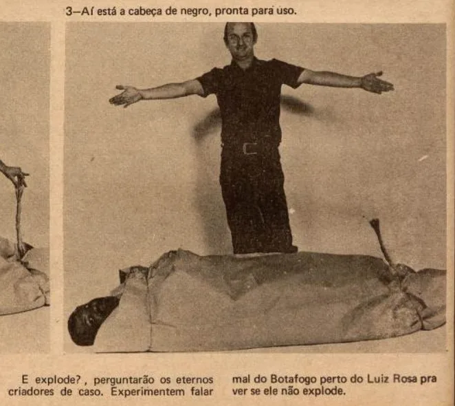 Em 1973, o jornal trouxe um passo-a-passo de como montar uma “cabeça-de-negro”. O nome se refere a um tipo de fogo de artifício usado em festas juninas; mas, se aproveitando do duplo sentido da expressão, O Pasquim exibiu uma sequência em que Luiz Rosa (espécie de faz-tudo do jornal) é envolto em papel e depois amarrado. O primeiro passo foi apresentado desta forma: "Pega-se um negro de bom tamanho". As instruções eram ilustradas por fotografias em que o próprio Jaguar se encarrega de transformar Luiz Rosa no artefato junino.