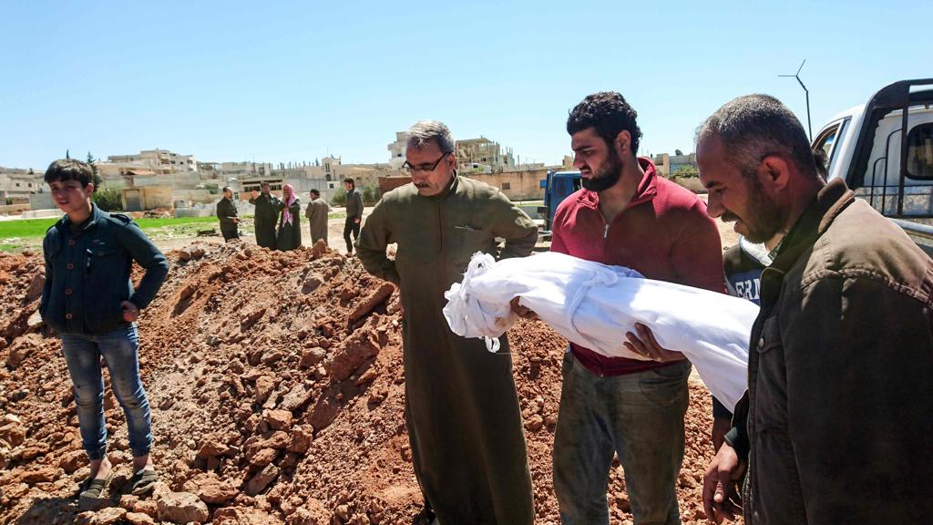 E, essa semana, um gás tóxico matou pelo menos 58 pessoas na província de Idlib, no norte da Síria. A correspondente do Washington Post Louisa Loveluck noticiou: “Ataques aéreos na cidade de Sheikh Khanoun, no noroeste, começaram logo após o amanhecer, lançando um agente químico não identificado que matou pelo menos 58 pessoas e encheu clínicas da região com pacientes espumando pela boca ou tendo dificuldade para respirar.”