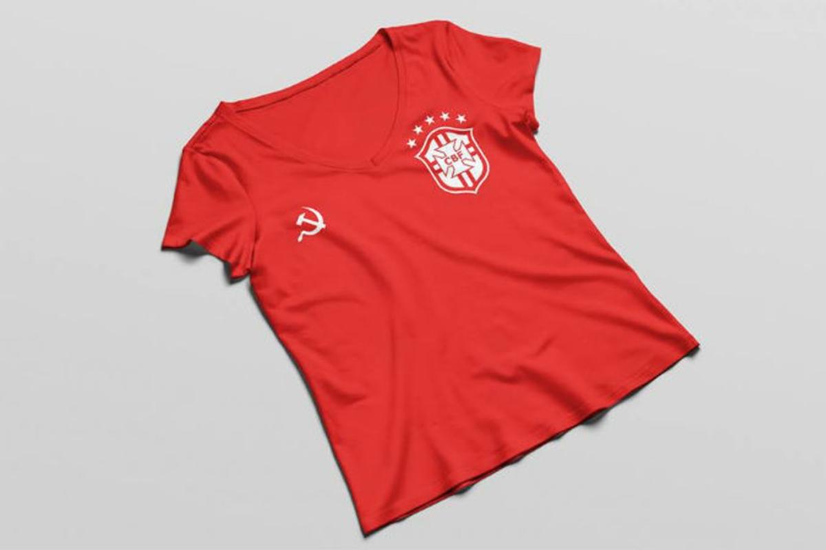 Nesse contexto, surgiu a ideia da criação de uma camiseta vermelha, cor que remete ao PT e primariamente ao comunismo, para que os militantes de esquerda pudessem torcer pelo Brasil na Copa sem serem confundidos com os que enxergam como de direita. Tal ideia ganhou repercussão na semana passada quando a designer mineira Luísa dos Anjos Cardoso postou uma foto em suas redes sociais de como seria a camisa destinada à torcida comunista: totalmente vermelha, com o tradicional escudo da CBF (Confederação Brasileira de Futebol), a sigla CBD (Confederação Brasileira de Desporto, antiga denominação da CBF) e, em vez da logomarca da Nike da versão oficial, o símbolo comunista da foice e do martelo.