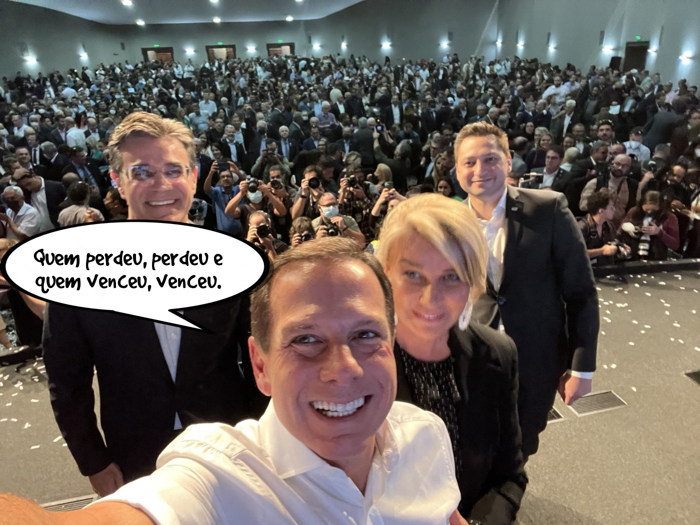 "Quem perdeu, perdeu e quem venceu, venceu" - João Doria, ex-governador de São Paulo, dando uma de Dilma e se referindo ao desafeto Eduardo Leite. Na ocasião, Doria aproveitou para explicar a pseudodesistência como candidato à Presidência - um golpe de marketing. Se bem que, vindo de Doria, o que não é golpe de marketing?
