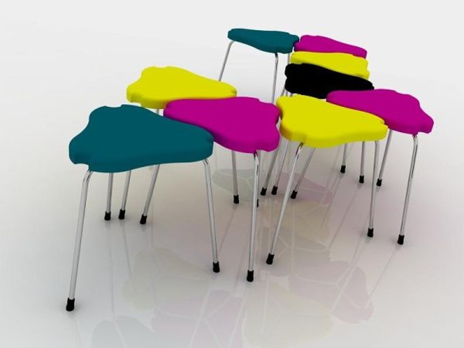 As banquetas criadas por Escobar são empilháveis, o que facilita na hora de guardar e transportar. Dispostas uma ao lado da outra, elas formam uma mesa de apoio. "É um móvel de pequenas dimensões, que não ocupa muito espaço quando empilhado, levando em consideração a tendência de redução dos ambientes", diz Escobar. "É ideal para momentos de descontração entre amigos."