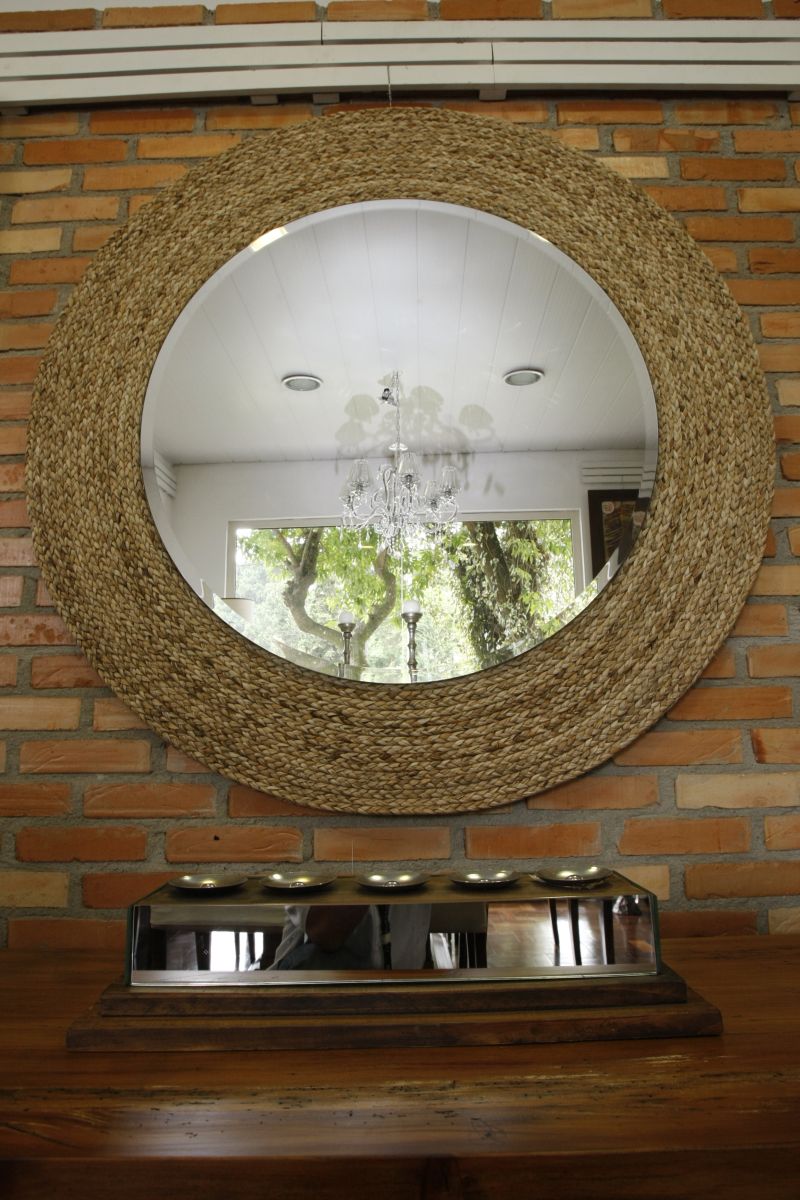 Outra forte tendência são os elementos contrastantes nas molduras dos espelhos. Adriana Collita destaca misturas de materiais nas molduras, como madeira de demolição, aço escovado, metal, ferro, cristais e fibras naturais. "A palha de bananeira, por exemplo, é um elemento sustentável que é descartado. Tanto em móveis, como adorno e enfeites, é aproveitada e compõe objetos lindos."