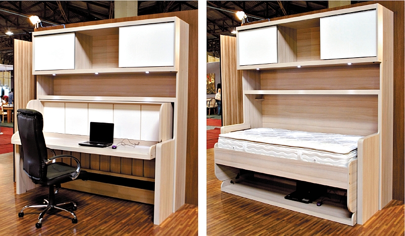 Outra novidade é o escritório/cama, da Gel-Art, de Curitiba. Em uma parceria com a alemã Halefe, a empresa apresenta um móvel para escritório que, com um simples movimento manual, é transformado em uma cama de solteiro. "Uma das vantagens é que o sistema é muito inteligente. Não precisa mexer em nada, nem mesmo uma caneta que esteja em cima da mesa, para poder utilizar", afirma o diretor comercial da companhia, Gelson de Souza. O preço de lançamento é R$ 6.480.