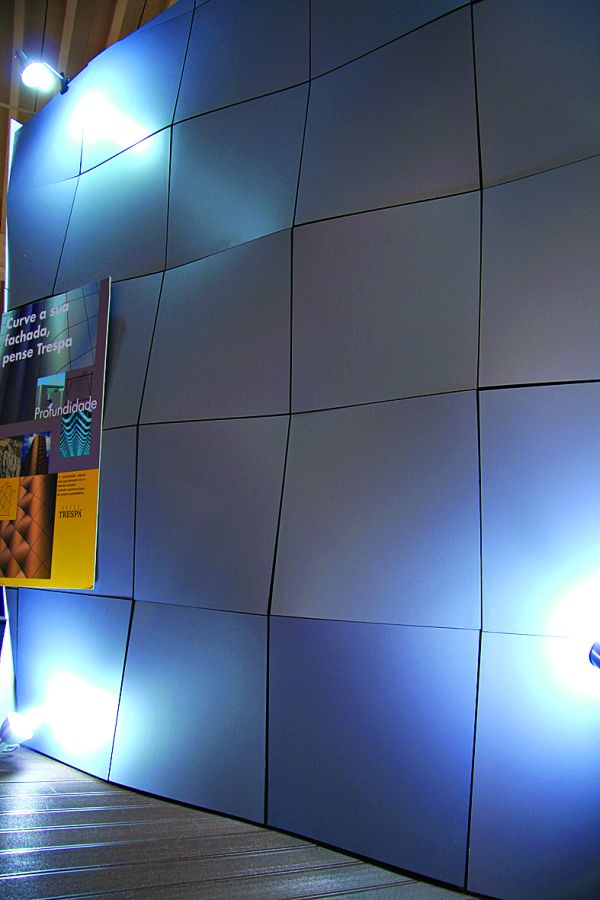 Quem visitou o evento pôde conferir produtos como as placas para revestimento de fachadas (foto) com tecnologia à prova de pichações. A remoção da tinta é simples, somente com pano e solvente prática que não provoca a descoloração dos painéis. As placas, que têm dez anos de garantia, recebem um tratamento por meio de descarga de elétrons, fazendo com que não tenham poros em sua extensão.