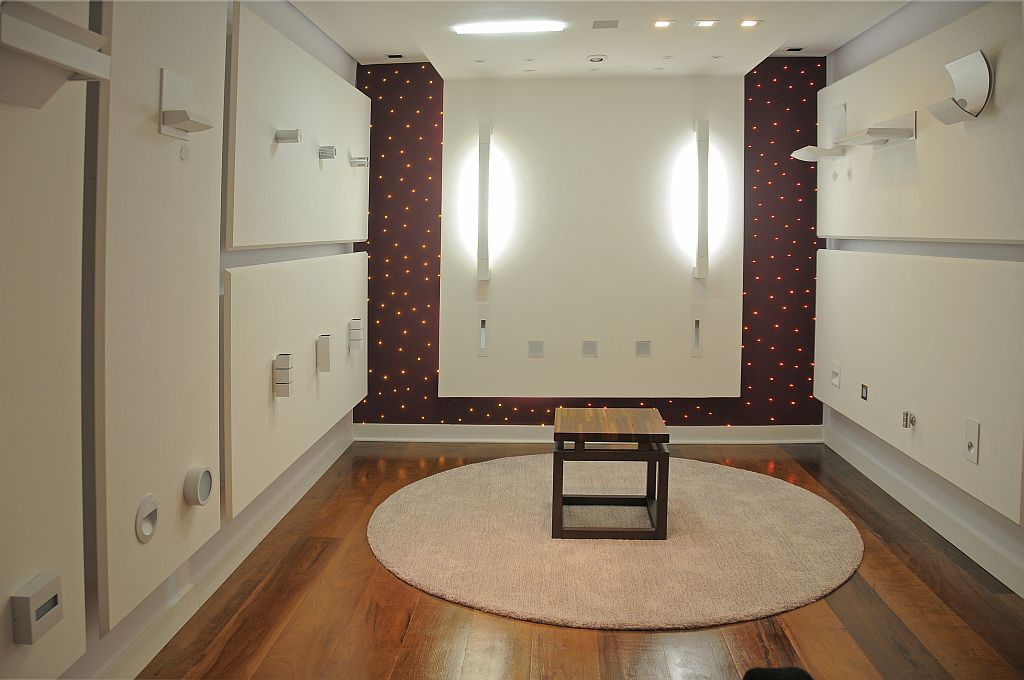 Eleonora comenta que os cenários podem ser instalados por automação (acionados por controle remoto e/ou painel eletrônico de parede) ou ainda da forma tradicional, com um interruptor para cada combinação. "Fazemos circuitos separados, mas que agrupam três ou quatro opções de iluminação em uma mesma tecla."