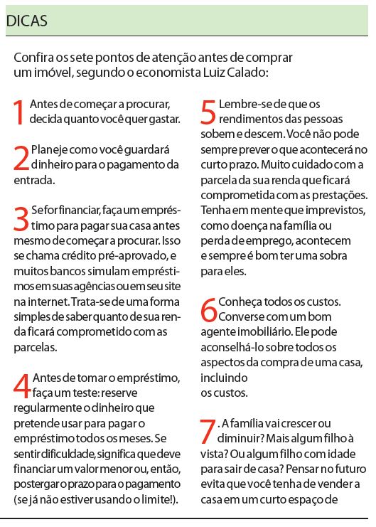 De linguagem fácil e direta, o livro Imóveis, seu guia para fazer da compra e venda um grande negócio acaba de ser lançado pela Editora Saraiva. A publicação é de autoria de Luiz Calado, economista, mestre em Administração, vice-presidente do Instituto Brasileiro dos Executivos de Finanças (IBEF) e gerente da área de educação da Associação Brasileira de Entidades dos Mercados Financeiros e de Capitais (Anbima).Com material vasto, mas tratado de forma objetiva, o livro auxilia o leitor na busca pelo primeiro imóvel da família, passando por como se preparar para o processo da documentação e do financiamento, e segue dando conselhos para quem pretende investir nessa área. À Gazeta do Povo, Calado respondeu algumas dúvidas cruciais de quem está na luta pela casa própria. Confira:Sair para visitar alguns imóveis à venda é um bom caminho para procurar a casa própria?Não. Se você procura um imóvel para morar, antes de iniciar as visitas precisa entender bem o quanto você pretende gastar, e quais as características do imóvel que deseja comprar, em termos de tamanho, número de quartos, dentre outros. O ideal é escrever o que pretende fazer num papel. Como o lado emocional conta muito na hora da compra, se você não tiver mapeado bem o que quer a chance de fazer um péssimo negócio é muito grande. O que mais ocorre é a compra de um imóvel acima do valor que se consegue pagar.
