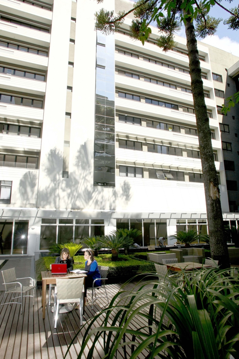 O edifício comercial Infinity Prime Offices, da construtora Cyrela, é um exemplo de como a manutenção da vegetação pode agregar valor ao empreendimento. Localizado no Cabral, o terreno escolhido para o prédio contava com um bosque e duas araucárias, que foram considerados na elaboração do projeto.