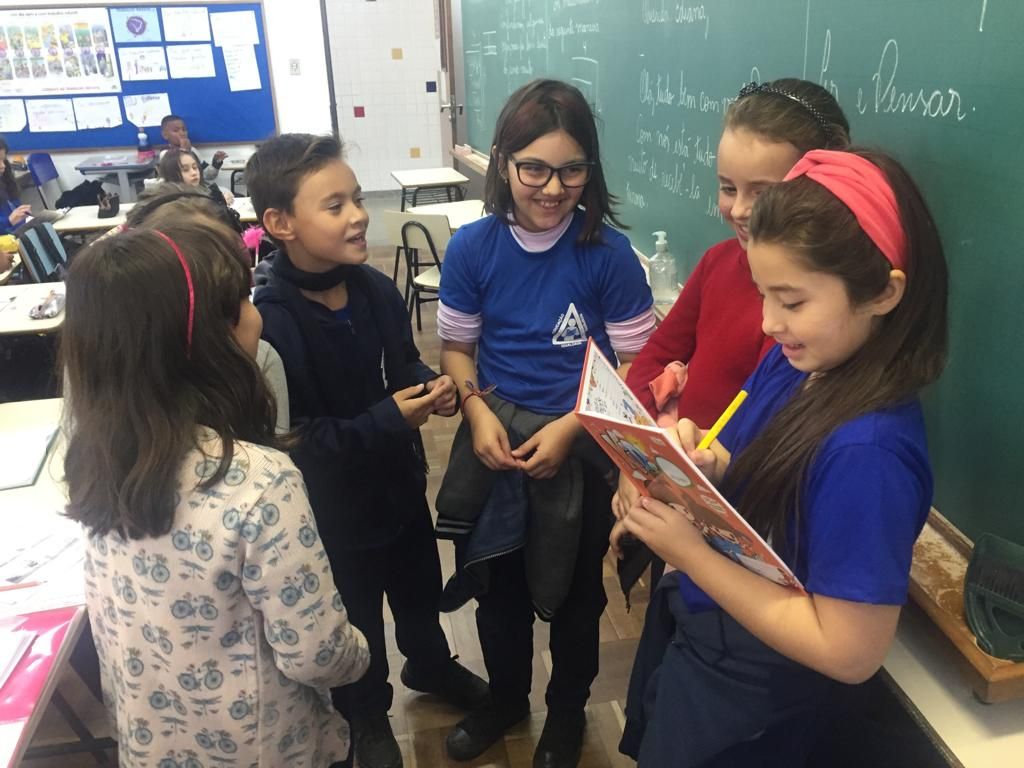 A professora propôs ações para que os alunos atuassem como monitores no recreio, para favorecer o diálogo com os colegas, buscando com que eles entendessem e expressassem os sentimentos e com isso, diminuíssem os conflitos. Os alunos ainda fizeram cartazes conscientizando e promovendo uma cultura de paz na escola, livre de preconceitos.
