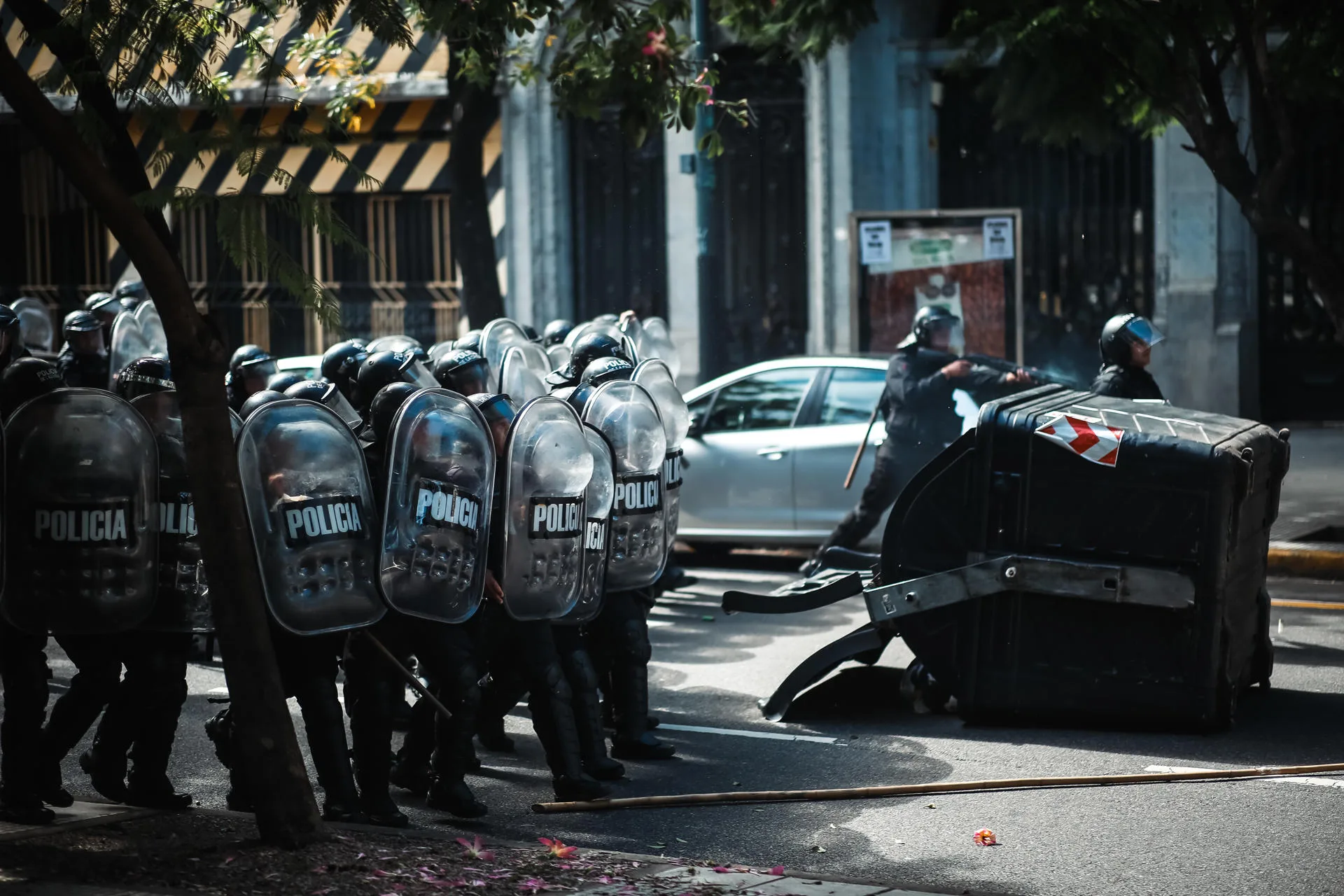 A Polícia da Cidade de Buenos Aires, seguindo o protocolo, avançou sobre os militantes e ativistas que bloqueavam a via, utilizando caminhões hidrantes, gás lacrimogêneo e balas de borracha para dispersar a multidão.